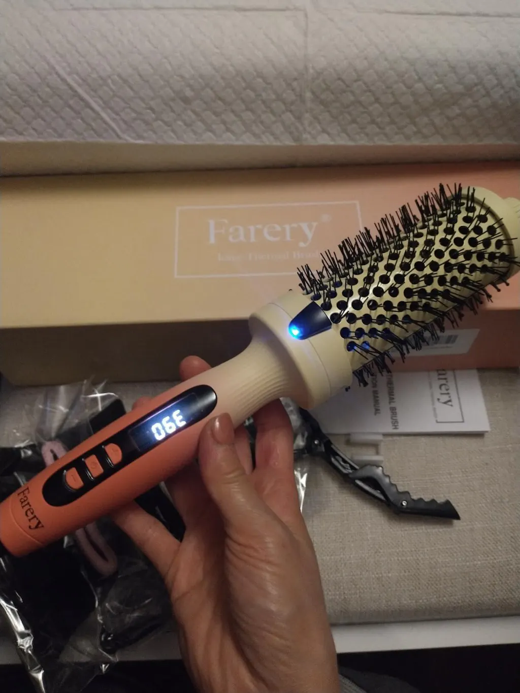 I love how this thermal brush uses ceramic ionic technology to give my hair a sleek, glossy finish. The brush heats up quickly and evenly, making my morning routine more efficient. I also like the digital display, which clearly shows the temperature settings, and with nine different options, I can easily find the right heat level for my hair type. The brush is designed to be quiet and delivers a quick blowout look with minimal effort. It adds volume and creates natural curls without much hassle. So far, it is an effective tool for anyone looking to achieve a salon-quality blowout at home.