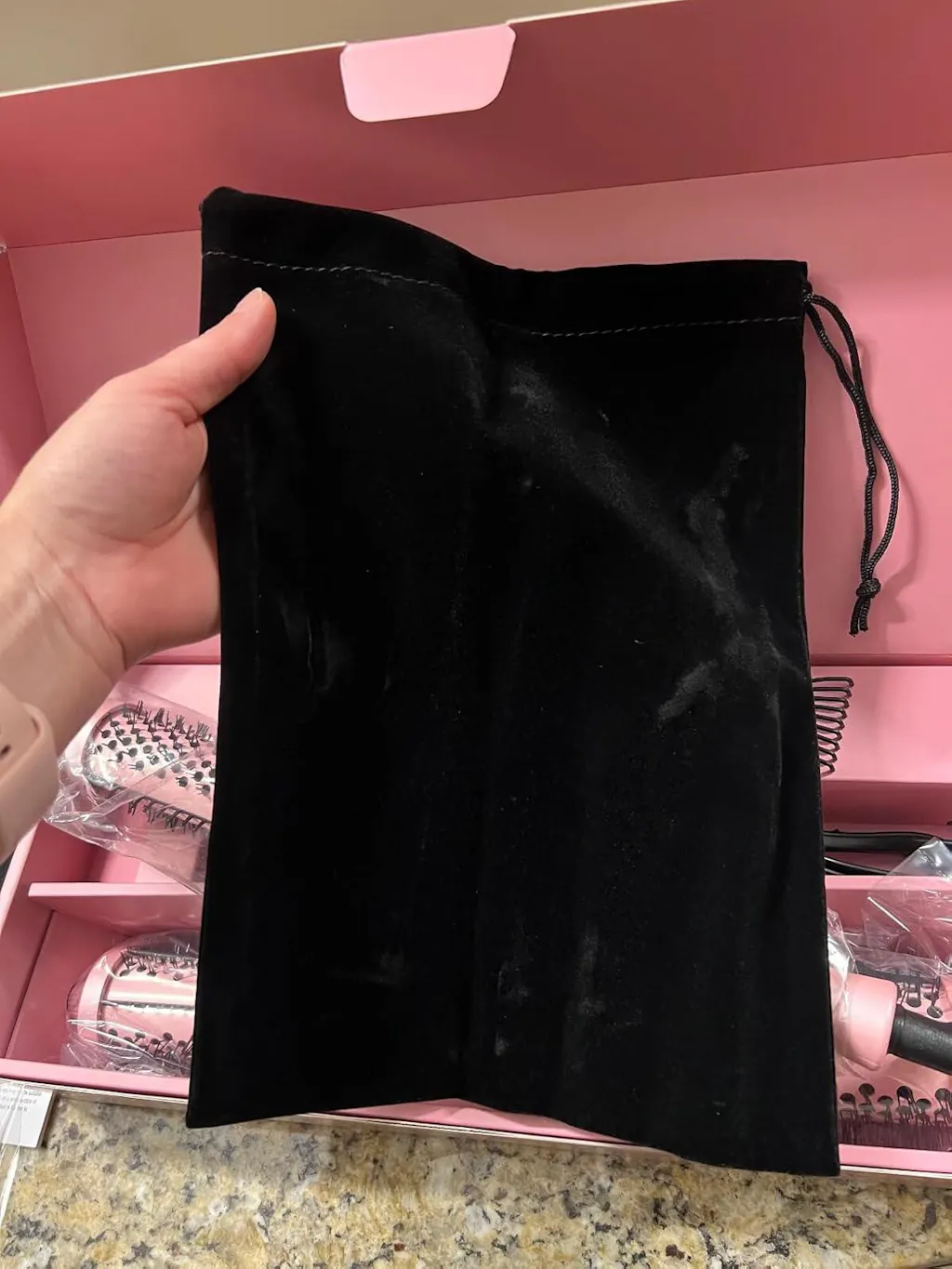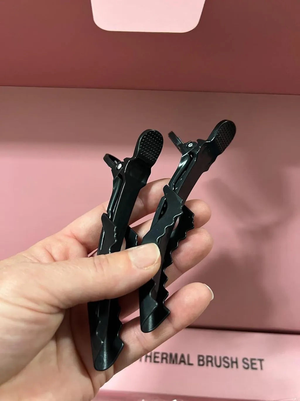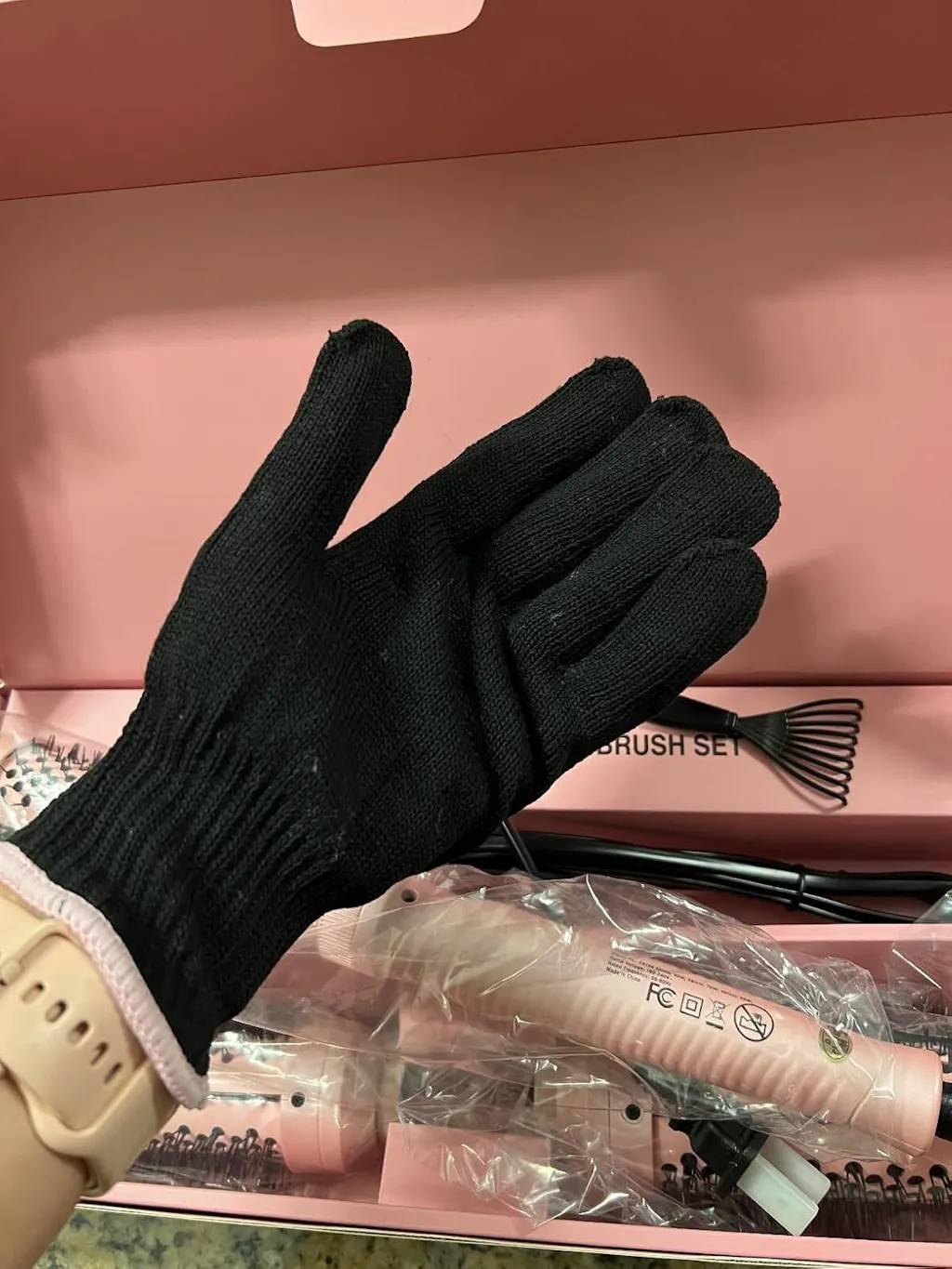 The overall look of the tool is very attractive with a feminine pink accent, beautiful gold trim, and button. I like the double locking safety feature of this brush too. It also comes with a thermal protecting glove, barrel cleaning comb and two clips to hold the hair in place. Plus, it features a lovely velvet bag to store all of the great contents. This is a really great set, and it’s become a part of my routine, it is a useful tool to achieve beautiful results.
