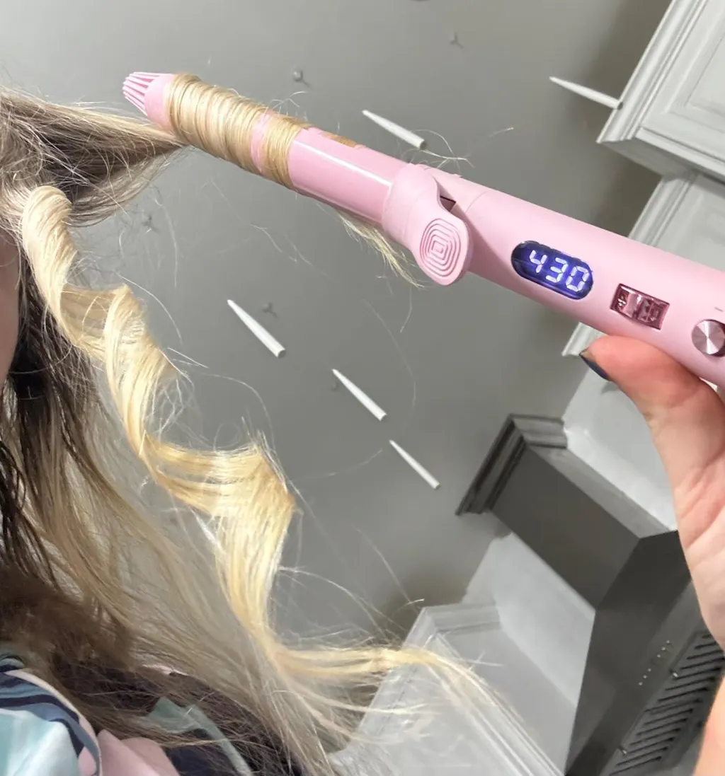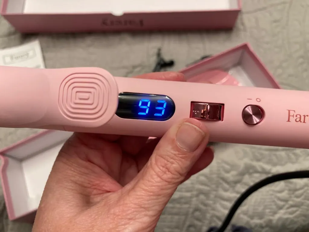 This curling iron has a really long barrel that allows me to curl my very long hair easily. The entire barrel is the same diameter for the whole length, which is my preference, and the ceramic coating is smooth and allows hair to release easily with no snags. You can tell that the device is plugged in, because the display will indicate that it’s off, and when switched on, you can see the temperature real time. It heats up very fast, in seconds, and lowers temperature fairly fast too, but in about double the time as heating up takes. The controls are well designed and difficult to accidentally hit to turn it on or change the temperature unintentionally. The silicone pad is helpful for peace of mind when you have to set this down, and the power cord is very long, so you have a bit of extra freedom to move. This curling iron works really well and I’m happy with it.